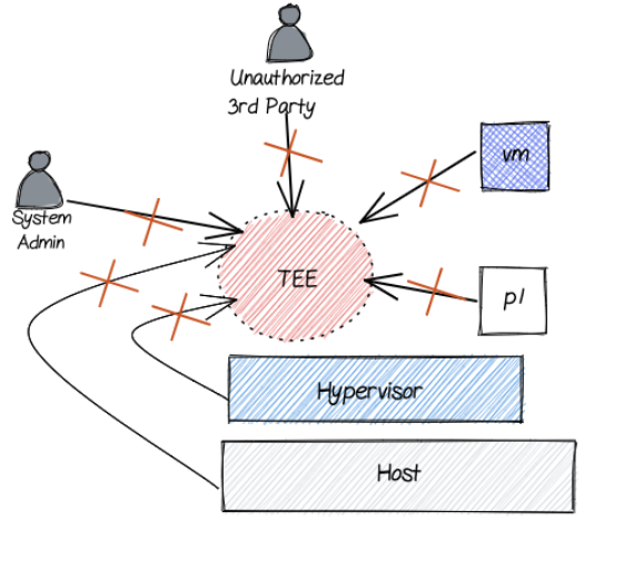 A Trusted Execution Environment (TEE) is at the heart of a confidential computing solution. TEEs are secure and isolated environments provided by confidential computing (CC) enabled hardware that prevents unauthorised access or modification of applications and data while in use. You’ll also hear the terms “enclaves” or “secure enclaves”. “TEEs” and “enclaves” are used interchangeably.